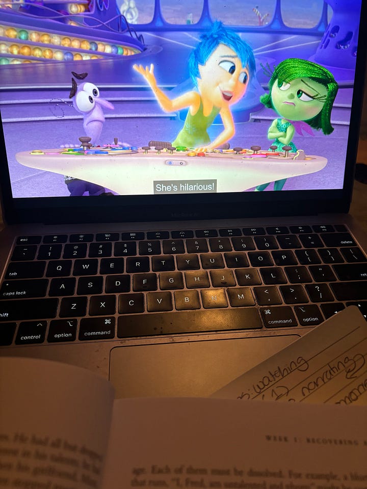 I completed my morning pages. Some days I barely hit a page, and other days I did the full three pages. I took myself on an at-home artist date to watch Inside Out and took some notes. The most important thing was I showed up to the empty pages despite my mood or what I was going through. I showed up and made time to watch the film. Showing up is key for most things in life.